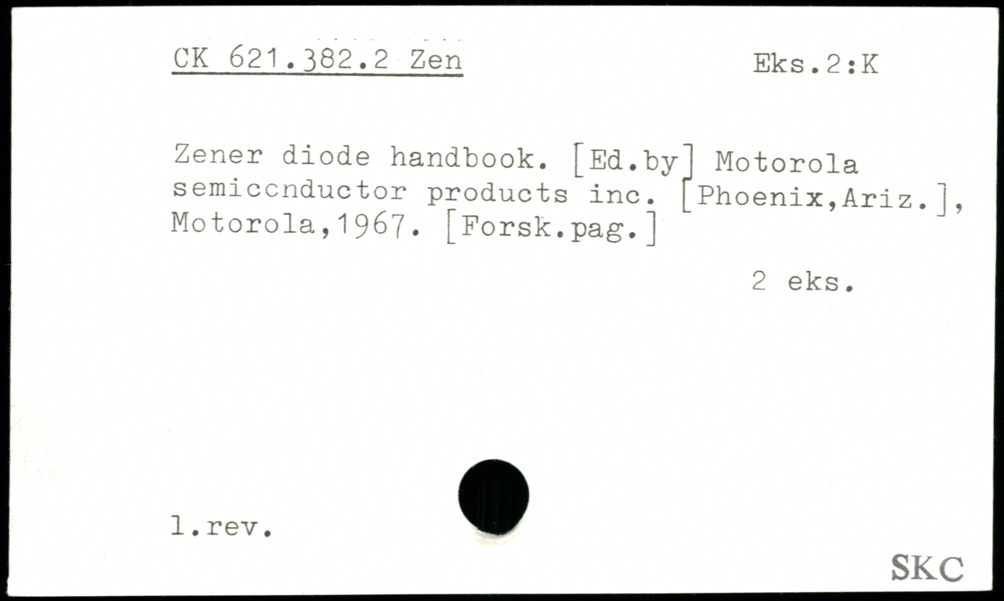 Zener diode handbook. [Ed.by] Motorola semiconductor products inc.