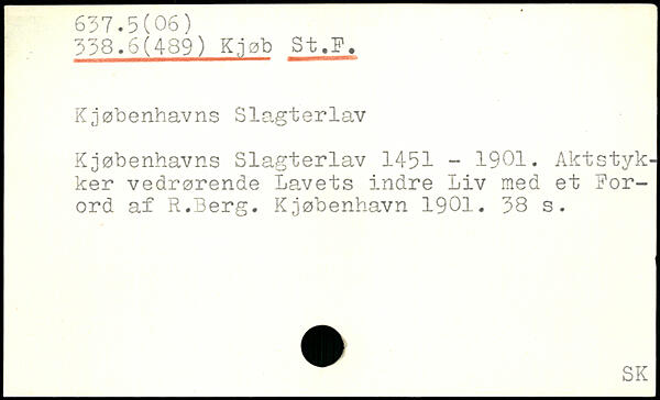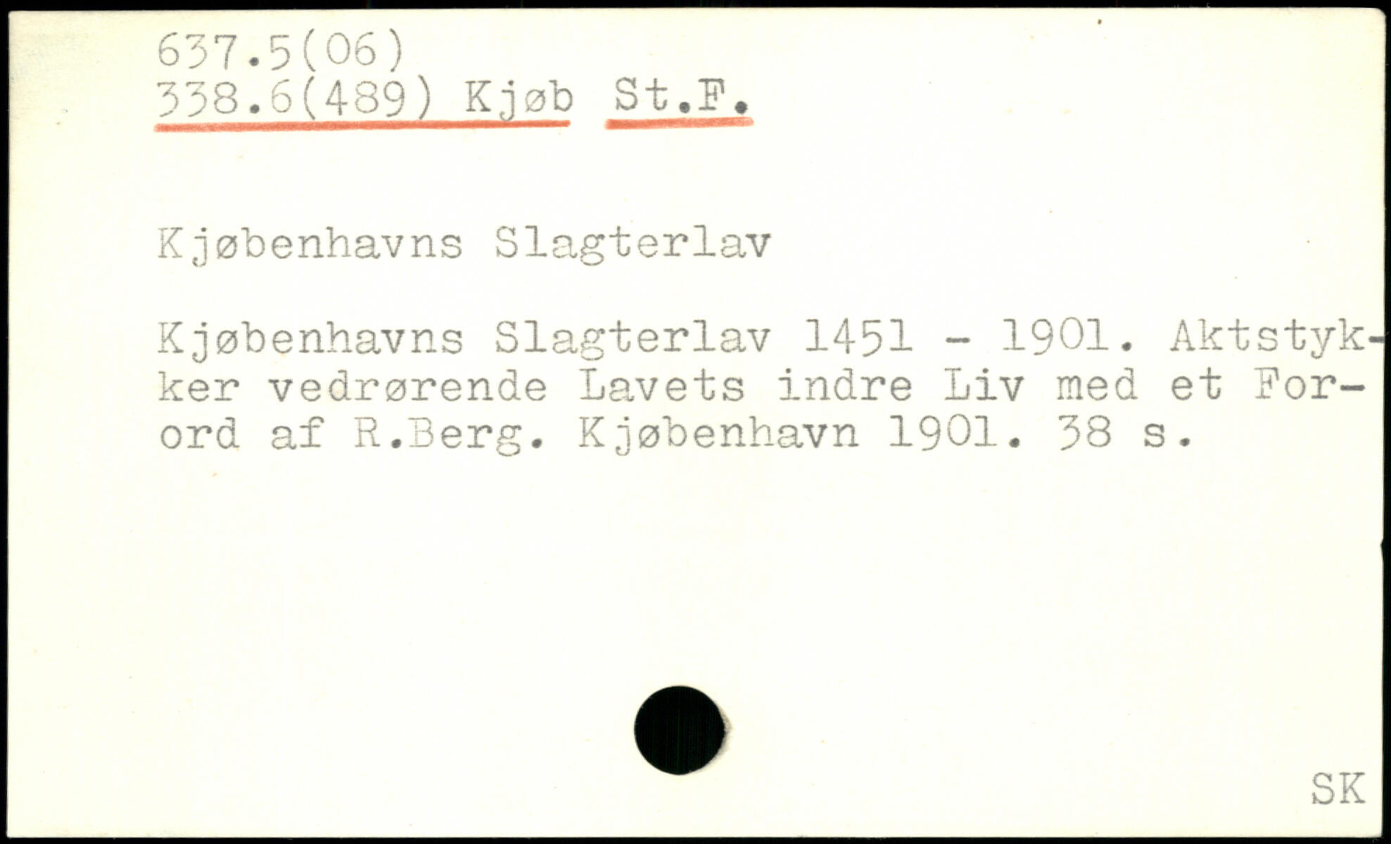 Kjøbenhavns Slagterlav Kjøbenhavns Slagterlav 1451 - 1901. Aktstykker vedrørende Lavets indre Liv med et Korord af R.Berg. Kjøbenhavn 1901.