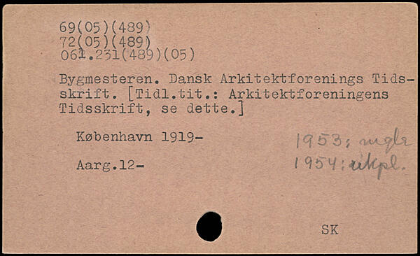 Bygmesteren. Dansk Arkitektforenings Tidsskrift. [Tidl.tit.: Arkitektforeningens Tidsskrift, se dette.]