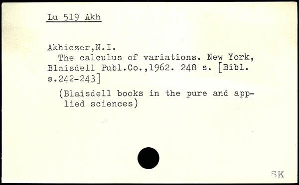 The calculus of variations. New York, Blaisdell Publ.Co.,1962.