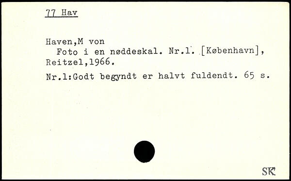 Foto i en nøddeskal. Nr.l. [København], Reitzel,1966. Nr.lsGodt begyndt er halvt fuldendt.