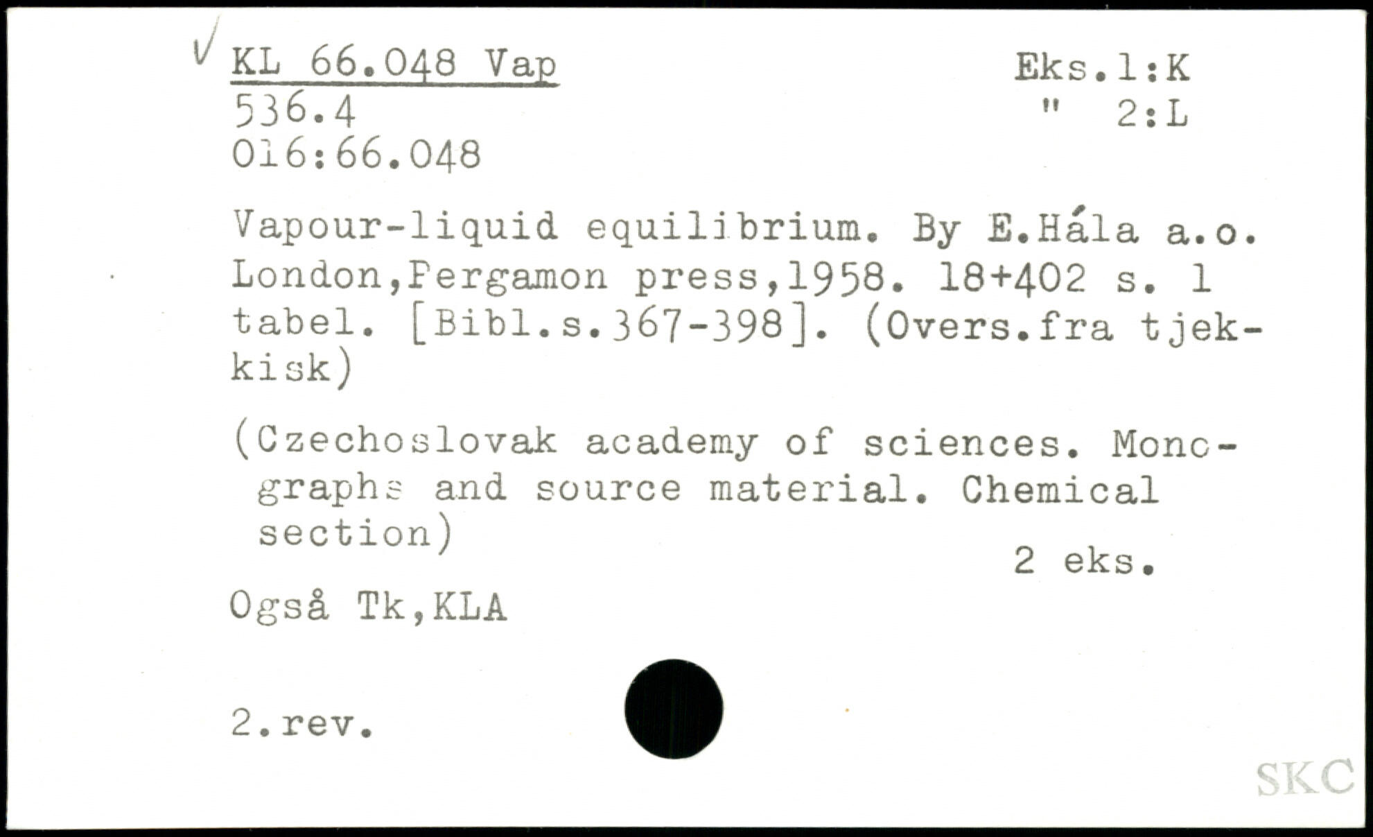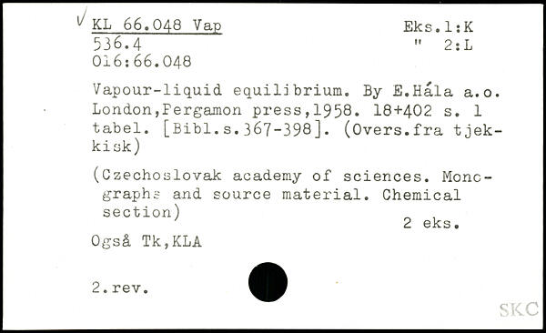 Vapour-liquid, equilibrium. By E.Hala a. o.