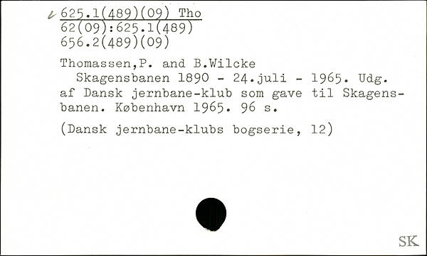 Skagensbanen 1890 - 24.juli - 1965. Udg. af Dansk jernbane-klub som gave til Skagensbanen.