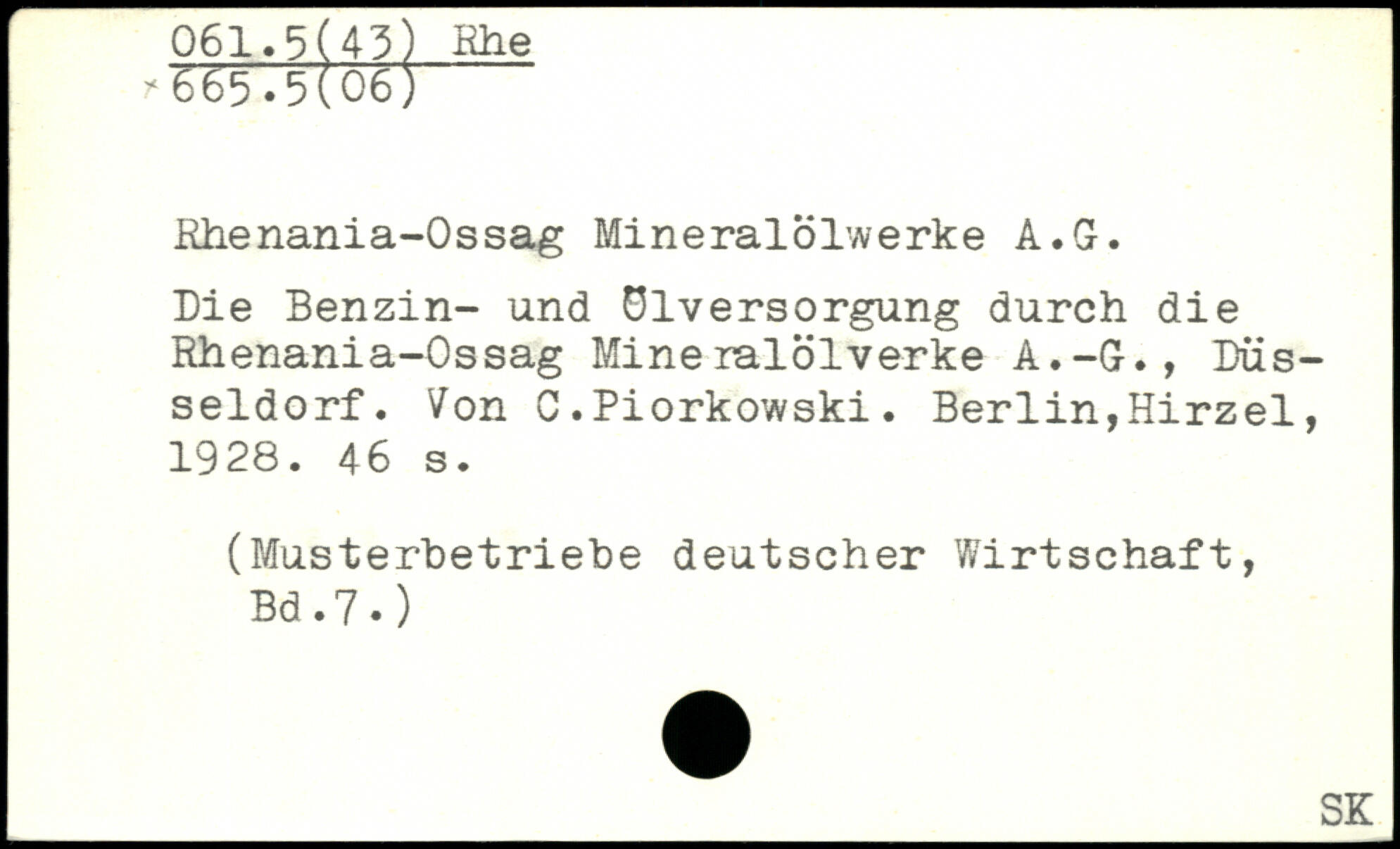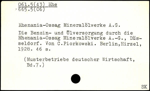 Rhenania-Ossag Mineralölwerke A.G. Die Benzin- und Ölversorgung durch die Rhenania-Ossag Mineralölverke A.-G., Düsseldorf. Von C.Piorkowski.