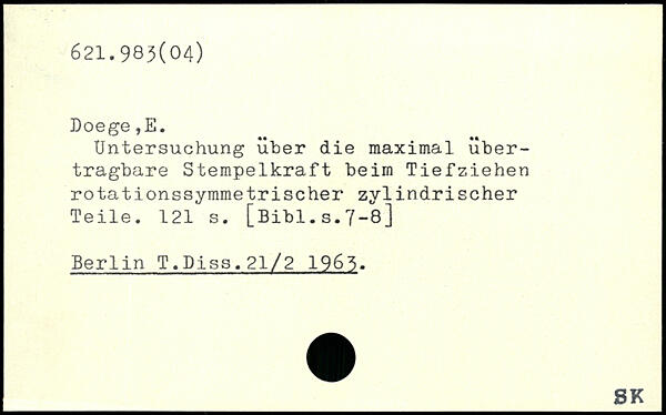 Untersuchung über die maximal übertragbare Stempelkraft beim Tiefziehen rotationssymmetrischer zylindrischer Teile.