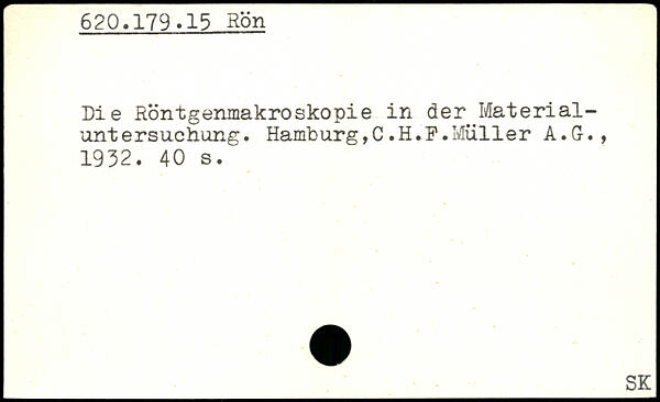 Die .Röntgenmakroskopie in der Materialuntersuchung. Hamburg,C.H.F.Müller A.G., 1932.