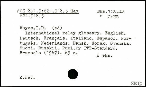 International relay glossary. English. Deutsch. Français. Italiano. Espanol. Por-tuguês. Nederlands. Dansk. Norsk. Svenska. Suomi. Russkii.