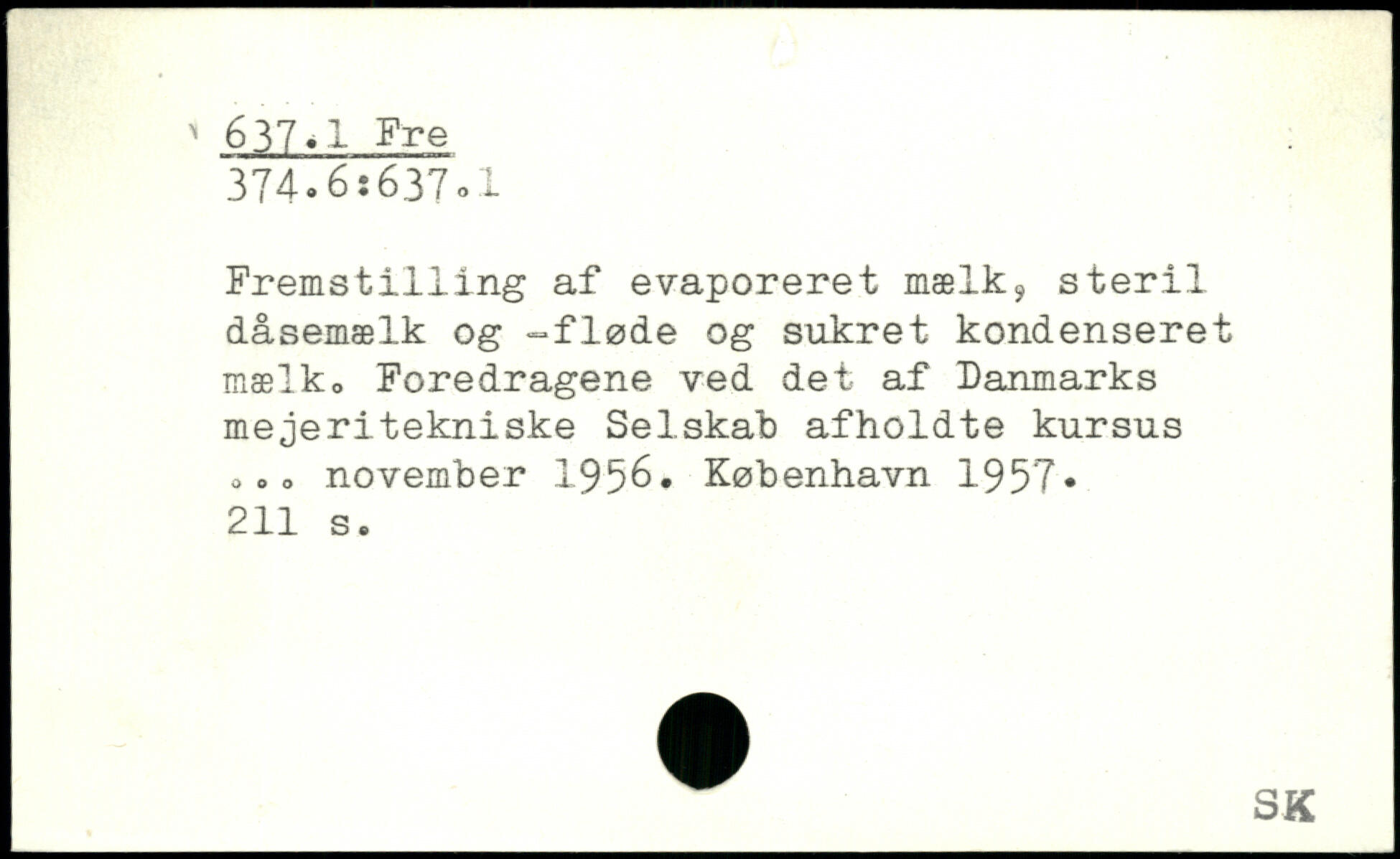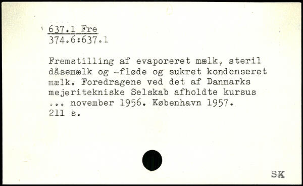 Fremst1111ng af evaporeret mælk? steril dåsemælk og -fløde og sukret kondenseret mælko Foredragene ved det af Danmarks mejeritekniske Selskab afholdte kursus o,o november 1956.