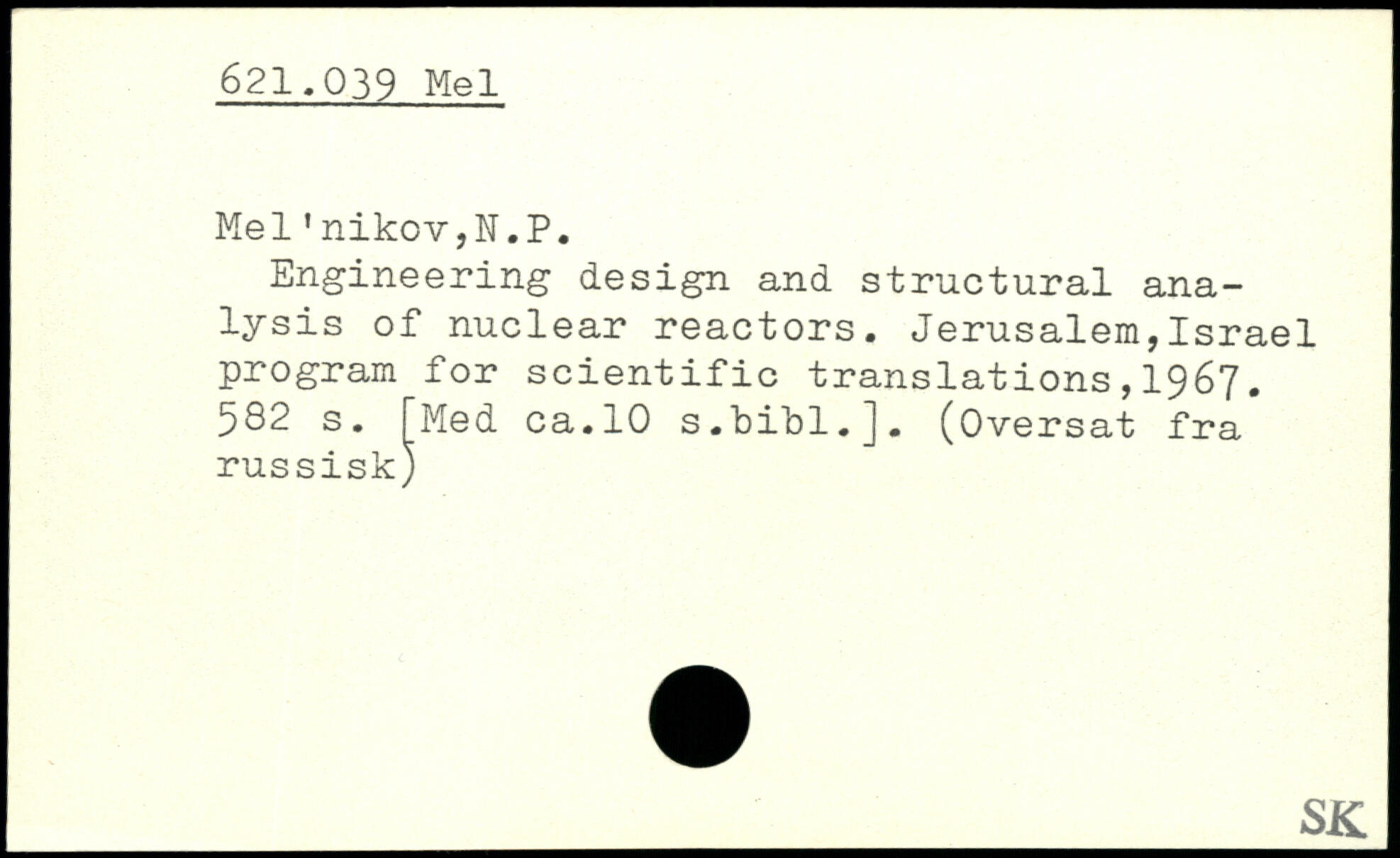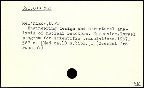 Engineering design and structural analysis of nuclear reactors. Jerusalem,Israel program for scientific translations,1967.