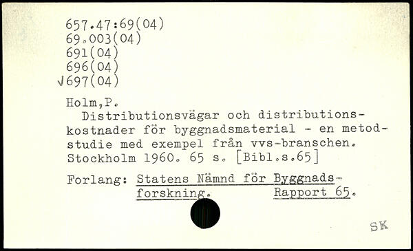Holm,P c Distributionsvägar och distributionskostnader för byggnadsmaterial - en metodstudie med exempel från vvs-branschen.