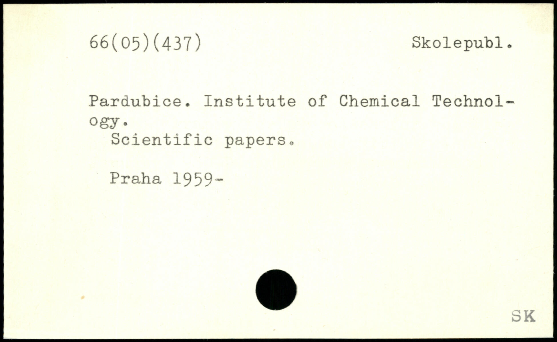 Pardubice. Institute of Chemical Technology. Scientific papers.