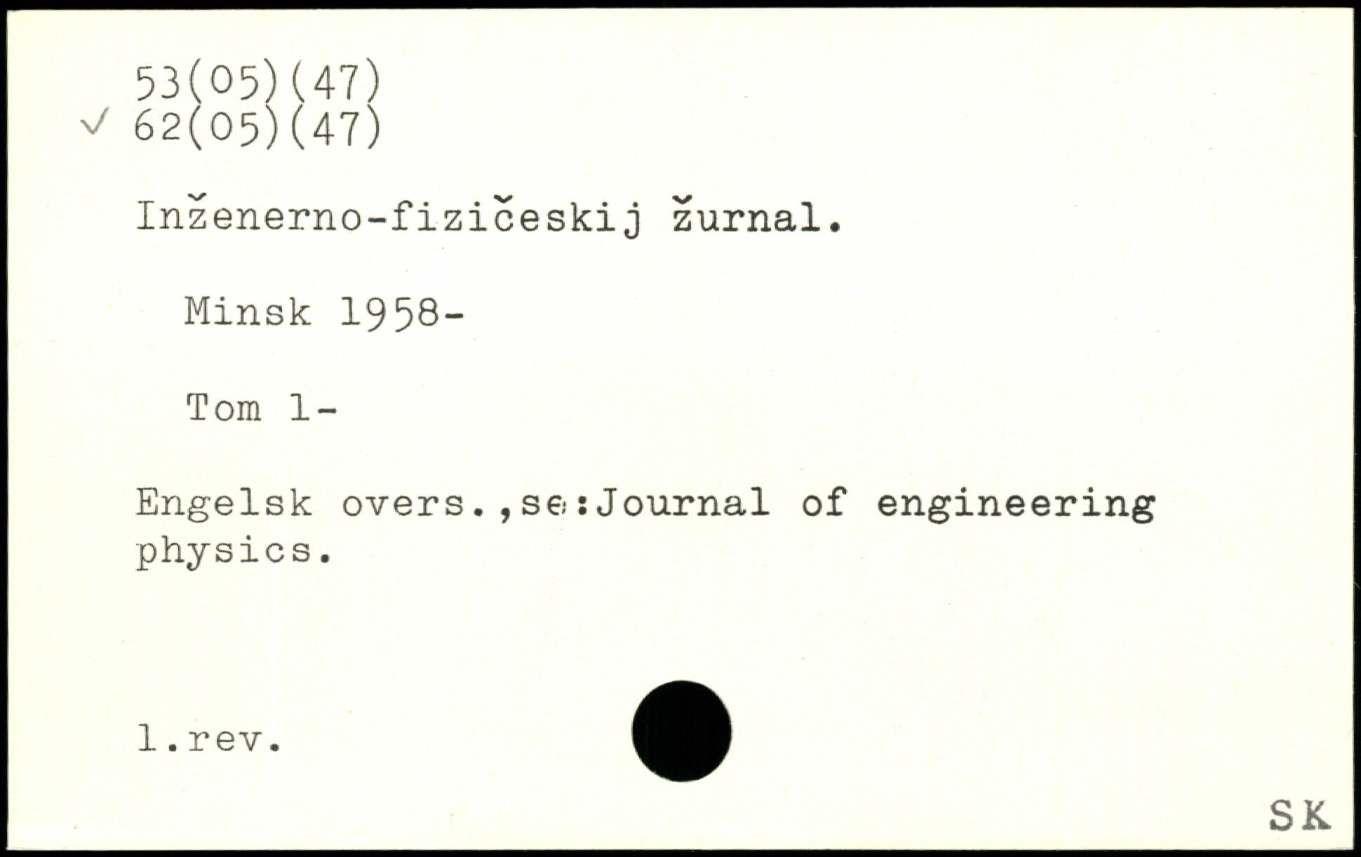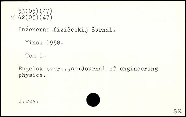 Inzenerno-fiziceskij zumal. Minsk 1958- Tom 1- Engelsk overssesJournal of engineering physics.
