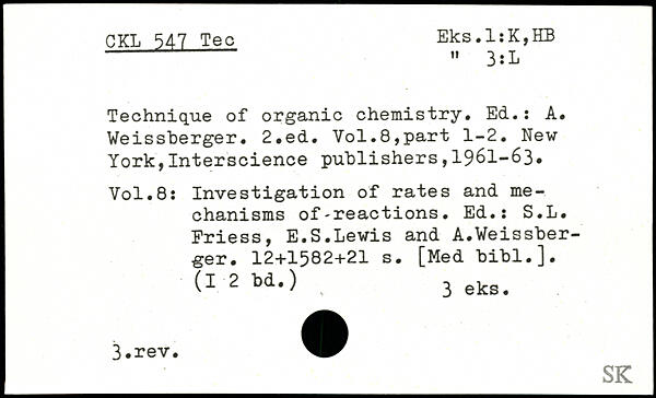 Technique of organic chemistry. Ed.: A. Weissberger.