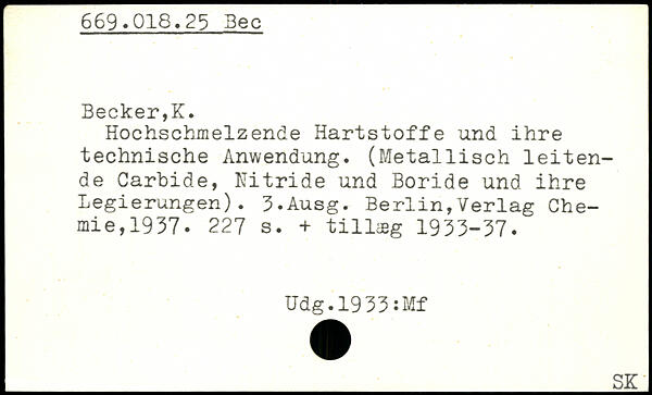 Hochschmelzende Hartstoffe und ihre technische Anwendung. (Metallisch leitende Carbide, Nitride und Boride und ihre Legierungen). 3.Ausg.