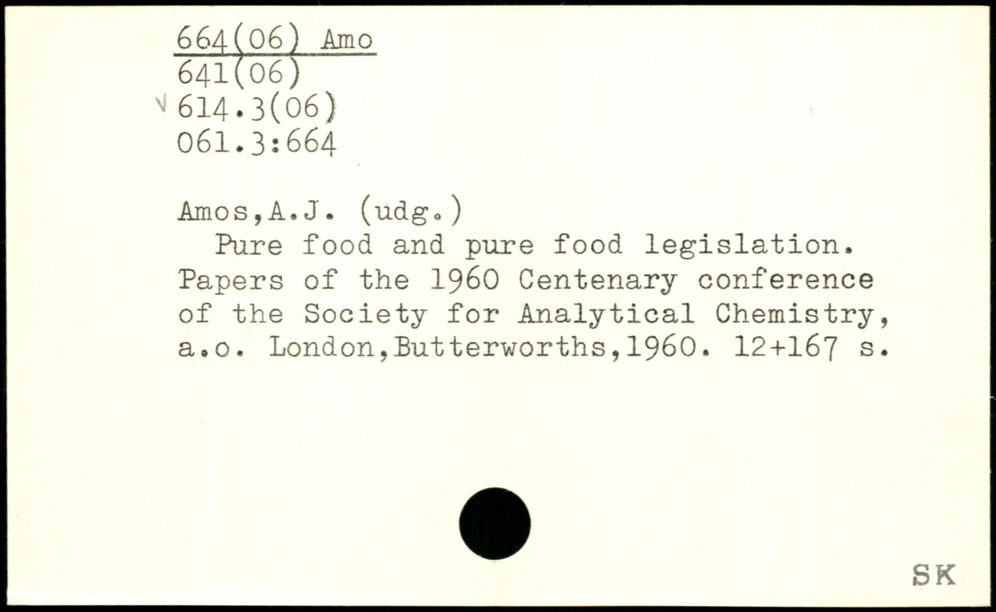 Pure food and pure food legislation. Papers of the 1960 Centenary conference of the Society for Analytical Chemistry, a.o.