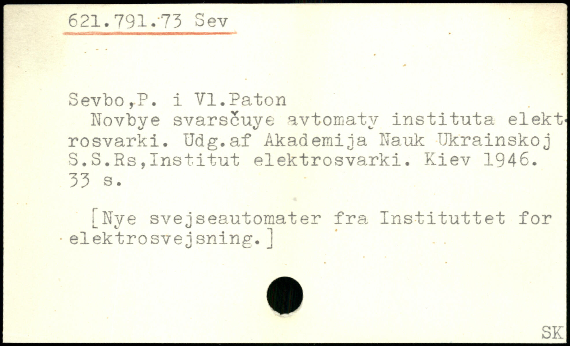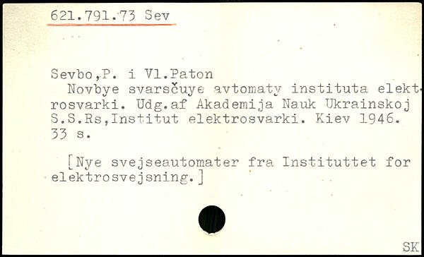 Novbye svarscuye avtomatv instituta elekt-rosvarki. Udg.af Akademi ja Nauk Ukrainskoj S.S.Rs,Institut elektrosvarki. Kiev 1946.