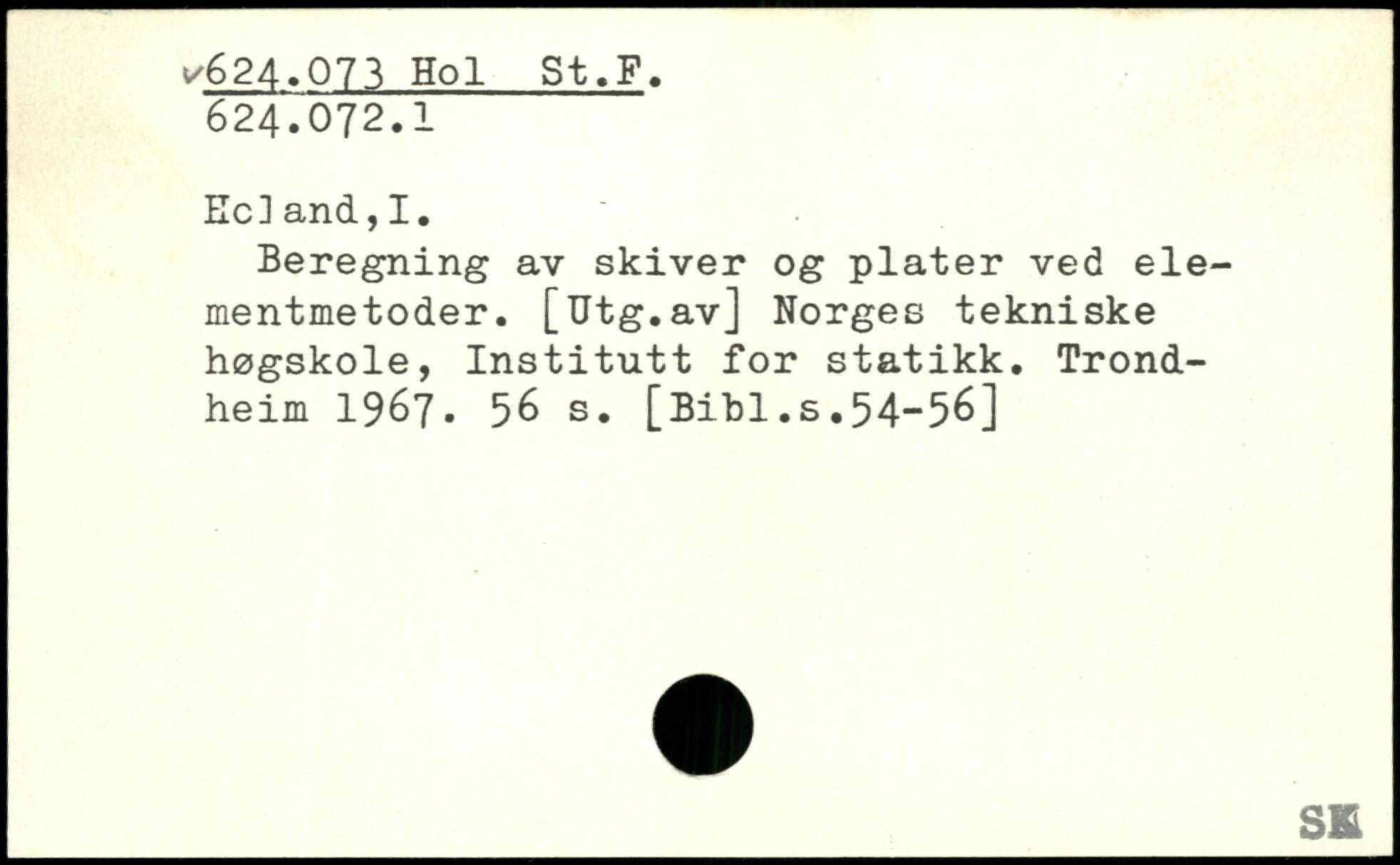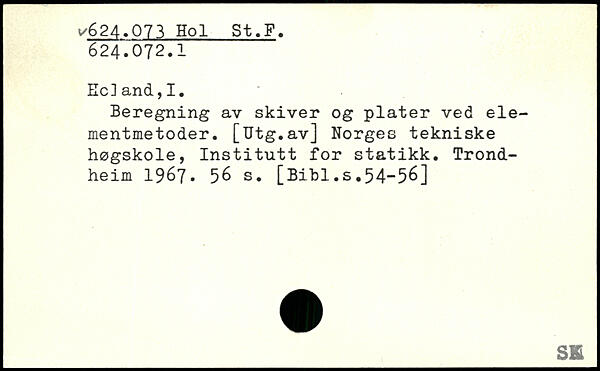 Ec]and,I. Beregning av skiver og plater ved elementmetoder. [Utg.av] Norges tekniske høgskole, Institutt for statikk.