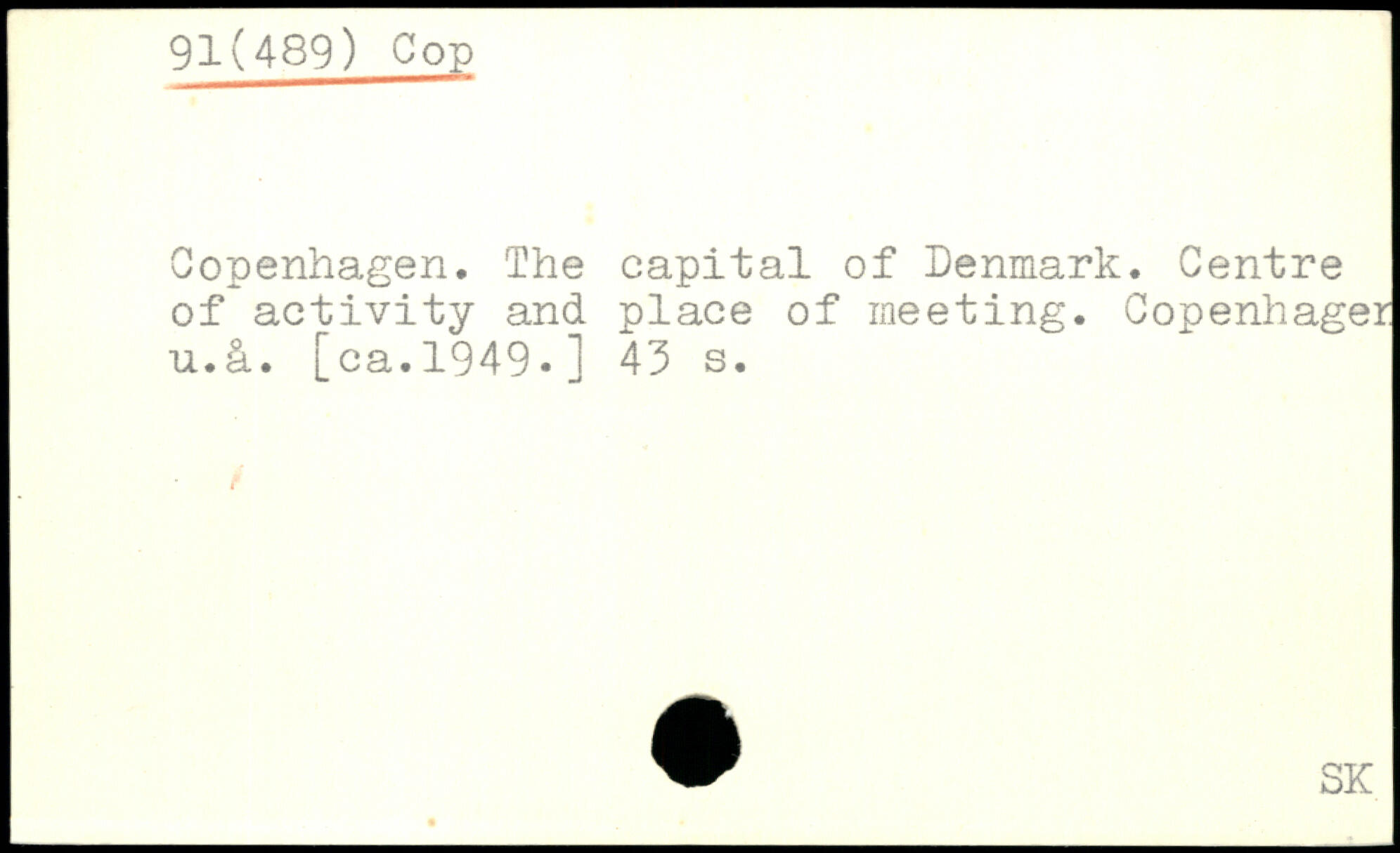 Copenhagen. The capital of Denmark. Centre of activity and place of meeting. Copenhager u.&. [ca.1949.]
