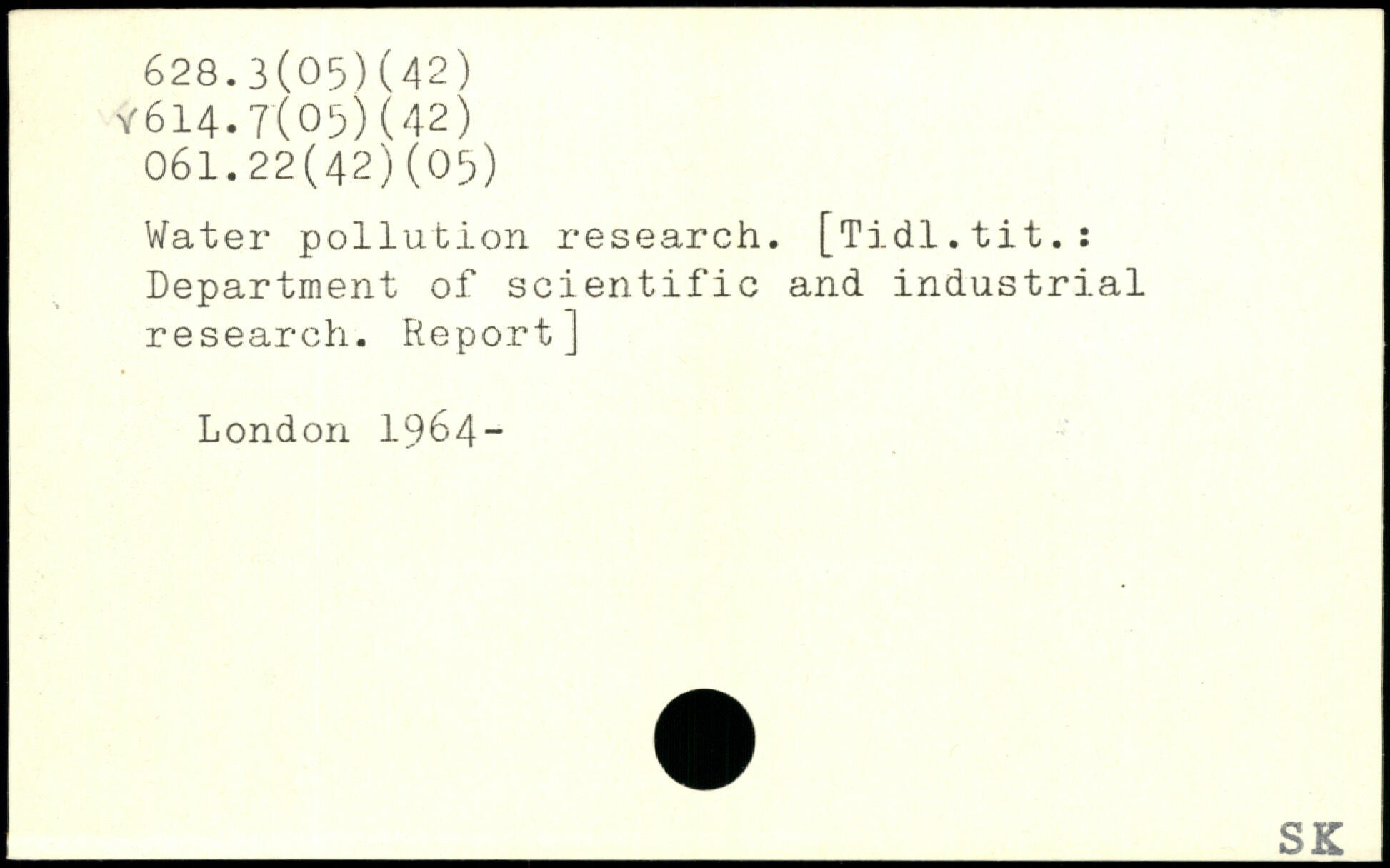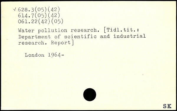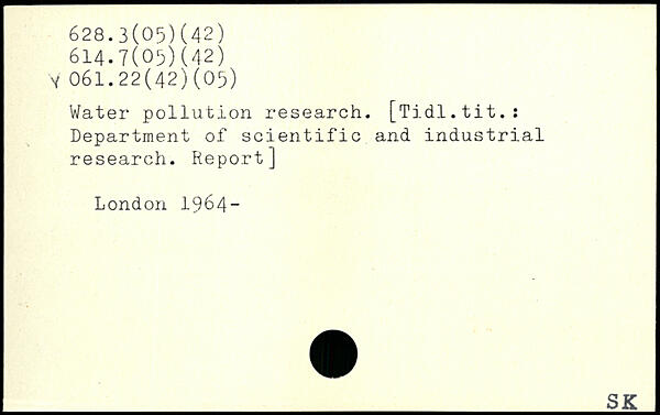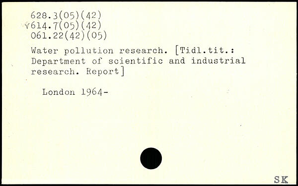Water pollution research. [Tidl.tit.: Department of scientific and industrial research. Report]