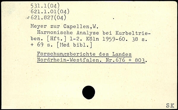 Meyer zur Capellen,W. Harmonische Analyse bei Kurbeltrieben. [Hft.] 1-2.