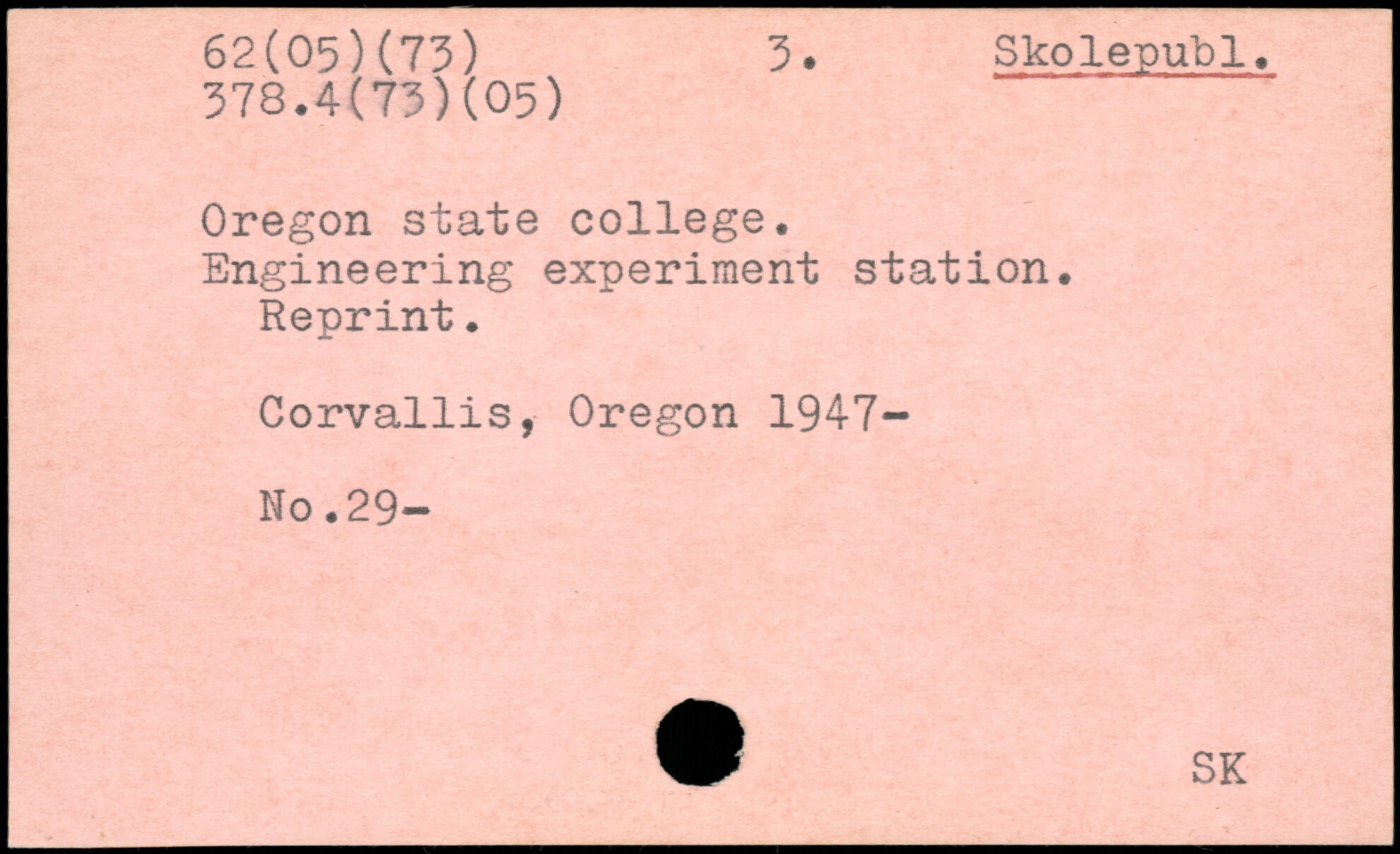 Oregon state college. Engineering experiment station. Reprint. Corvallis, Oregon 1947-No. 29-