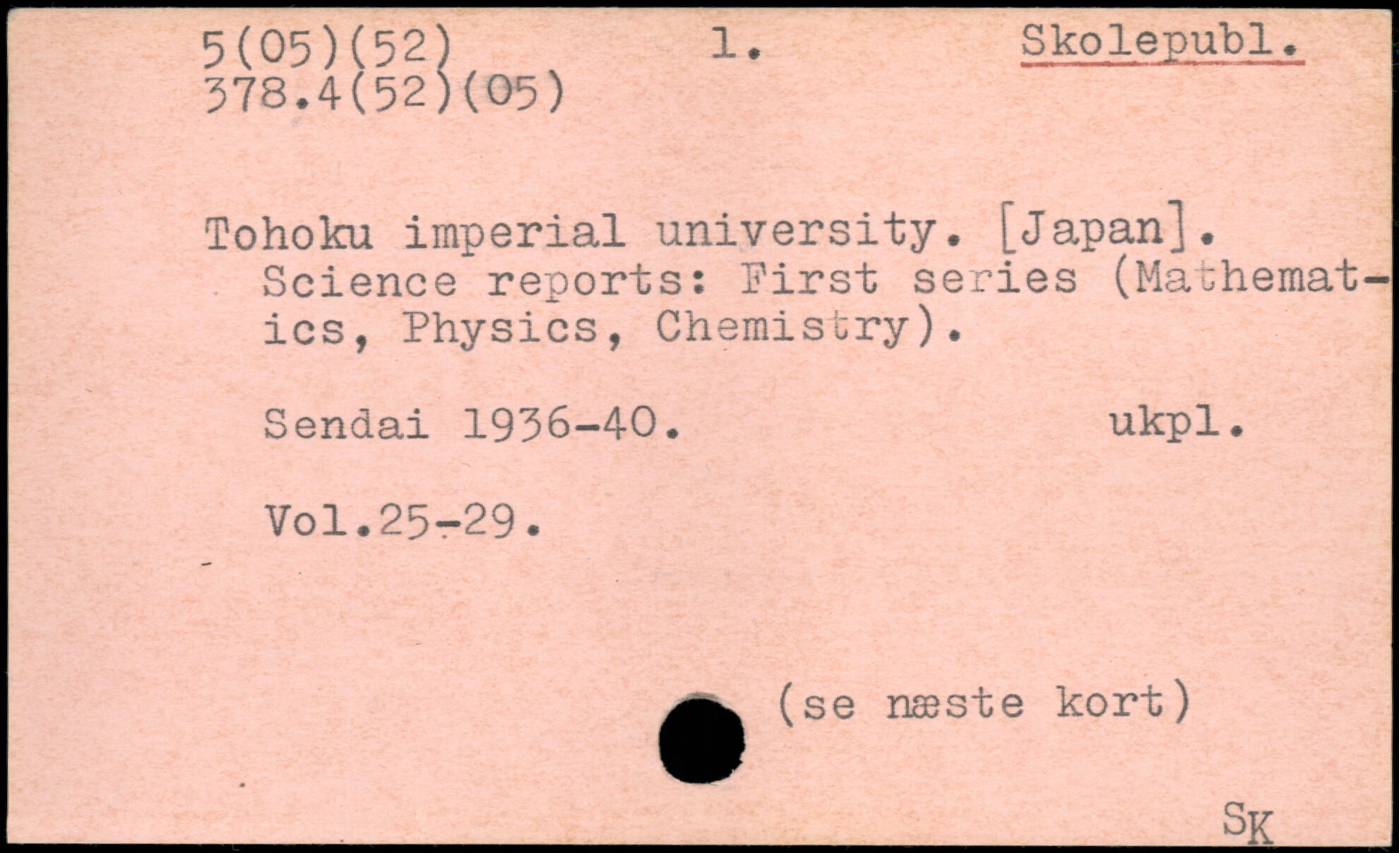 1. Skolepubl. 378.4(52)(05) Tohoku imperial university. [Japan]. Science reports: Pirst series (Mathematics, Physics, Chemistry). Sendai 1936—40. ukpl.
