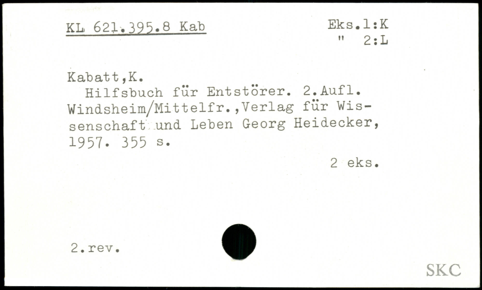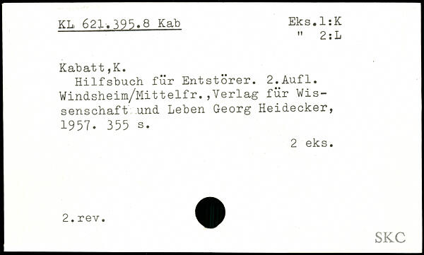 Hilfsbuch für Entstörer. Z.kufl. Windsheim/Mittelfr.,Verlag für Wissenschaft und Leben Georg Heidecker, 1957.