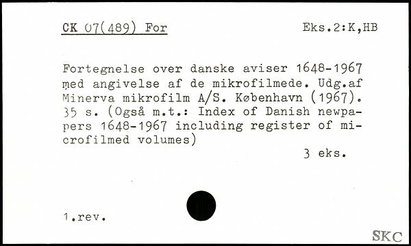 Fortegnelse over danske aviser 1648-1967 med angivelse af de mikrofilmede. Udg.af Minerva mikrofilm a/S. København (1967).