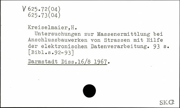 Untersuchungen zur Massenermittlung hei Anschlusshauwerken von Strassen mit Hilfe der elektronischen Datenverarbeitung.