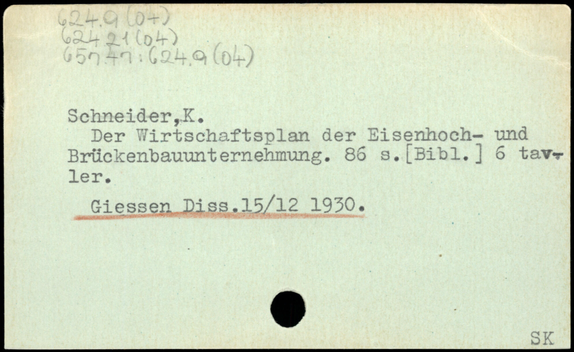 Der Wirtschaftsplan der Eisenhoch- und Brückenbauunternehmung.