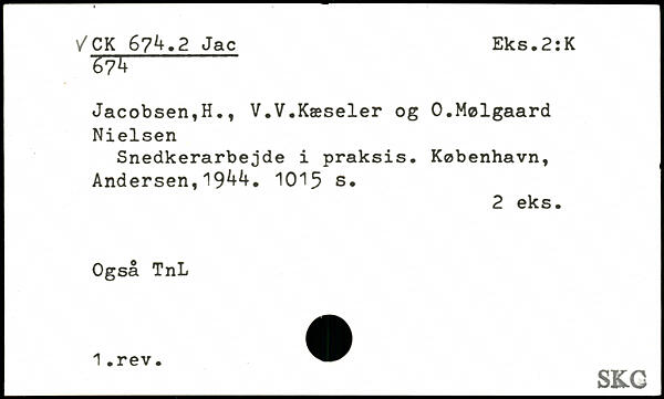 Jacobsen,H., V.V.Kæseler og O.Mølgaard Nielsen Snedkerarbejde i praksis. København, Andersen, 19^.