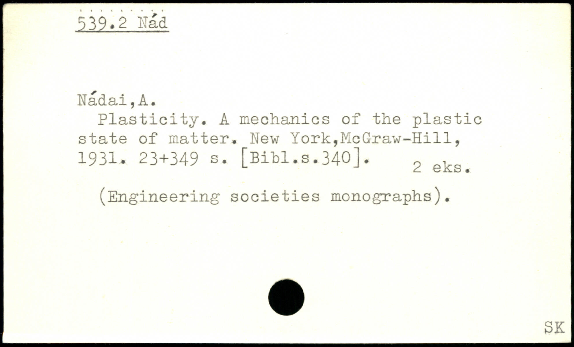 Plasticity. A mechanics of the plastic state of matter, hew