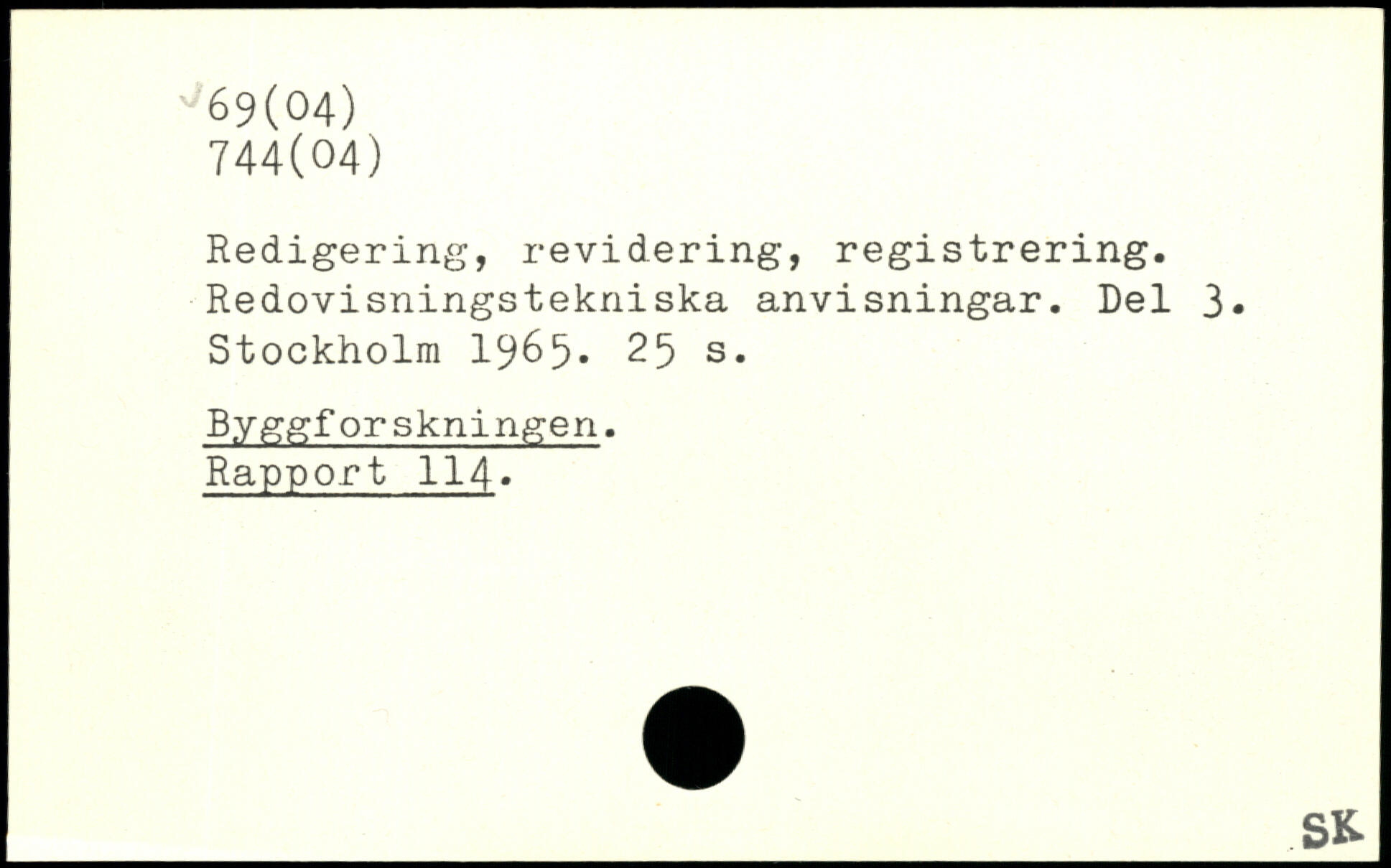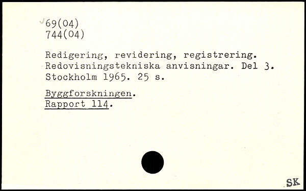 Redigering, revidering, registrering. Redovisningstekniska anvisningar. Del 3, Stockholm 19&5.