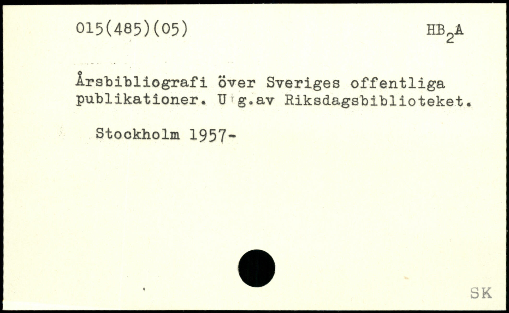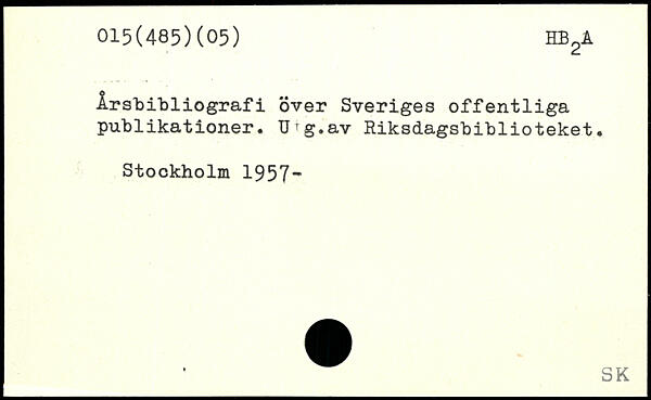 Årsfcibliografi over Sveriges offentliga publikationer. Urg.av Riksdagsbiblioteket.