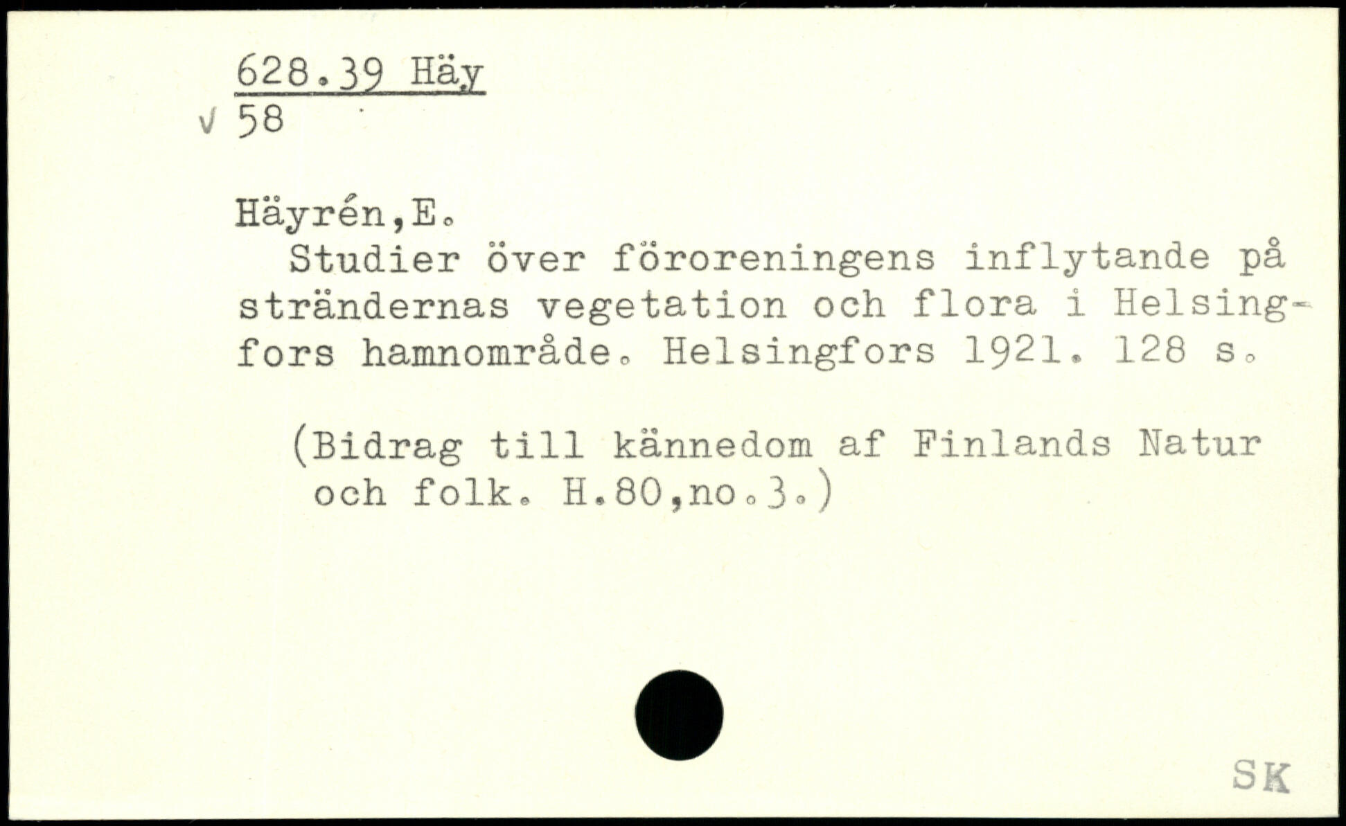 Studier över föroreningens inflytande på strändernas vegetation och flora i Heising-: fors hamnområde.