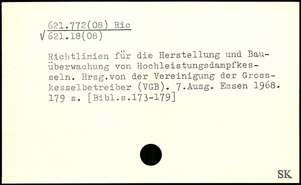 Richtlinien für die Herstellung und Bau-uberwachung von Hochleistungsdampfkes-seln. Hrsg.von der Vereinigung der Grosskesselbetreiber (VGB). 7.Ausg.