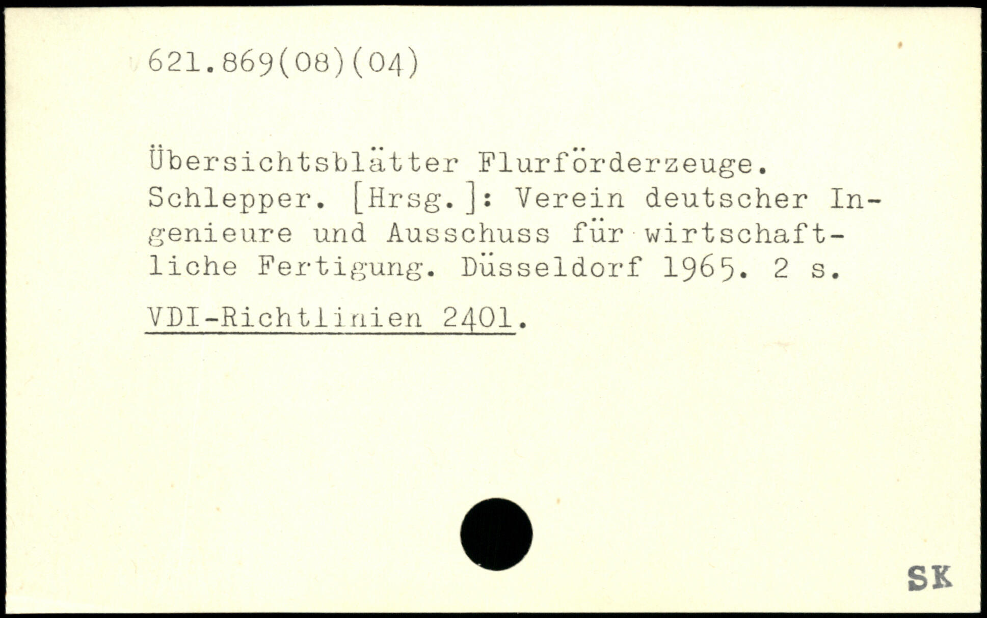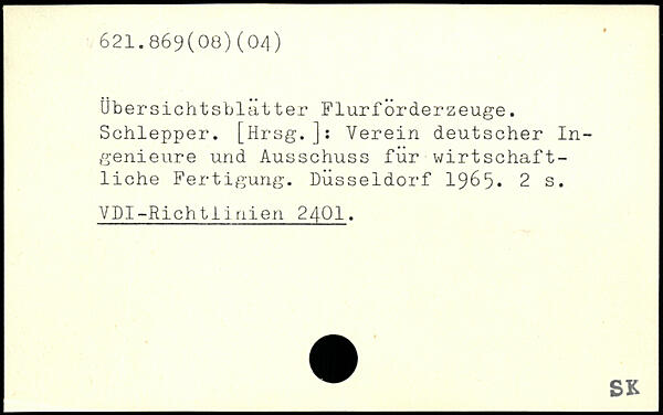 Übersichtsblätter Flurfürderzeuge. Schlepper. [Hrsg.]: Verein deutscher Ingenieure und Ausschuss für wirtschaftliche Fertigung. Düsseldorf 1965.