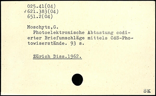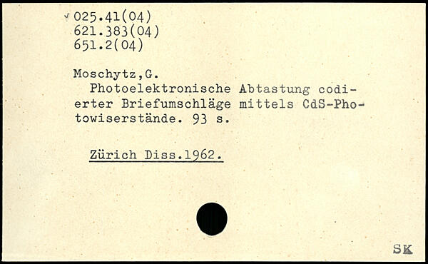 Photoelektronische Abtastung codierter Briefumschläge mittels CdS-Pho-towiserstände.