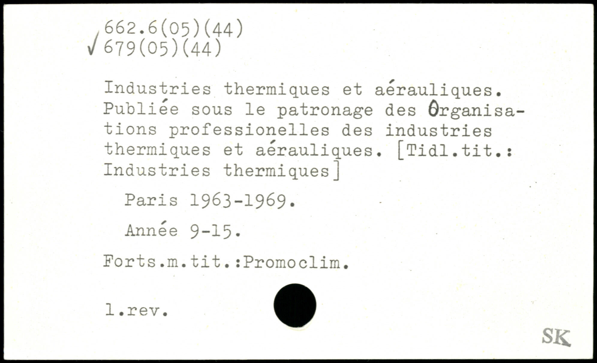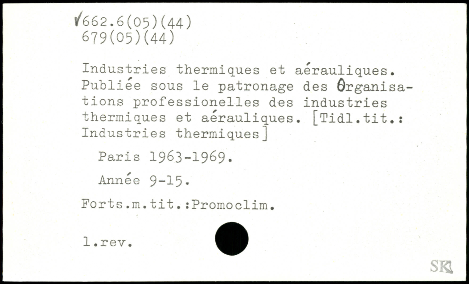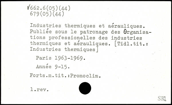 Industries thermiques et aérauliques. Publiée sous le patronage des Organisations professionelles des industries thermiques et aérauliques. [Tidl.tit.: Industries thermiques]