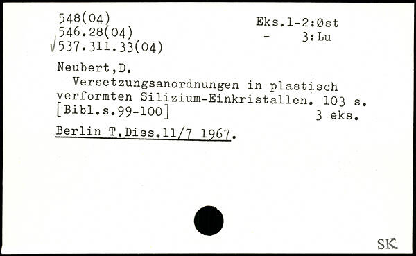 Versetzungsanordnungen in plastisch verformten Silizium-Einkristallen.