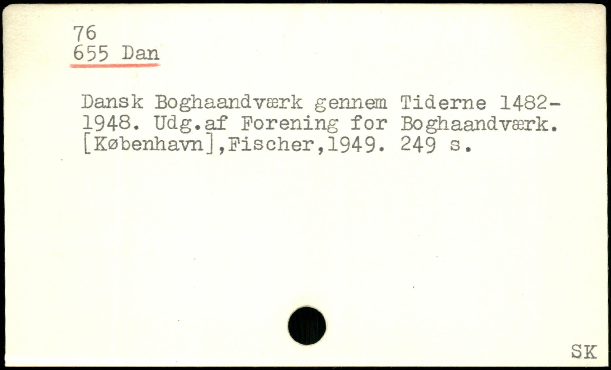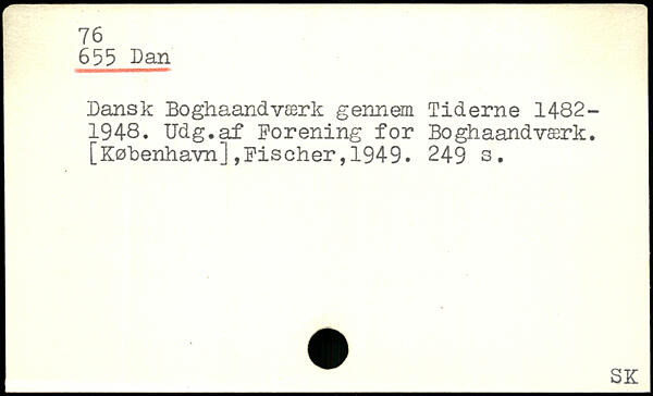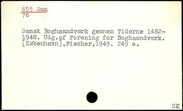 Dansk Boghaandværk gennem Tiderne 1482-1948. Udg.af Forening for Boghaandværk. [København],Fischer,1949.