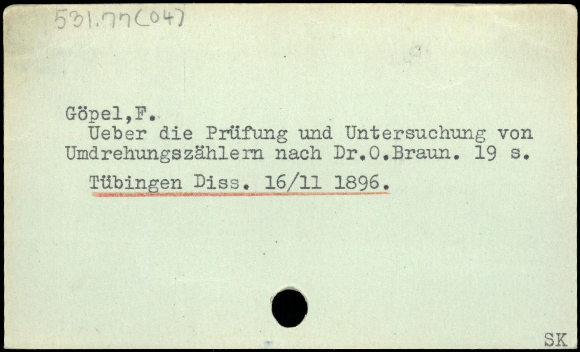 Üebsr die Prüfung und Untersuchung von UmdrehungsZählern nach Dr.O.Braun.