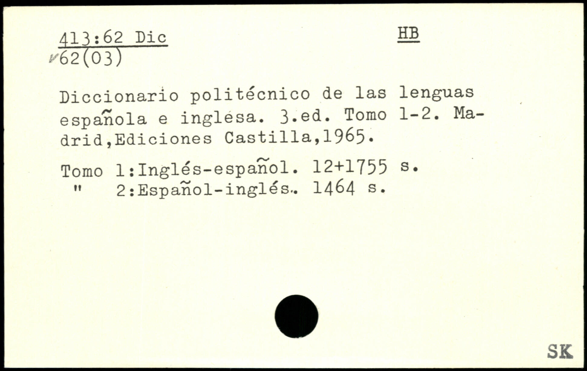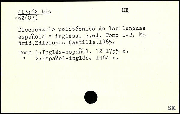 Diccionario politécnico de las lenguas espanola e inglesa. 3,®d. Toiqo 1-2.