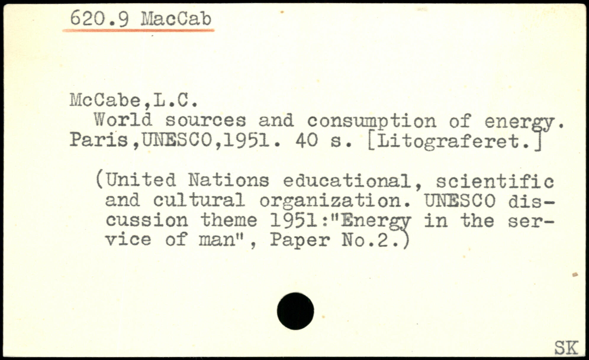 World sources and consumption of energy. Paris,IMESC0,1951.