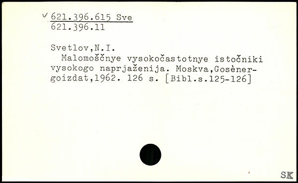 Malomoscnye vysokocastotnye istocniki vysokogo naprjazenija. Moskva,Gosèner-goizdat,1962.