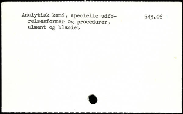Analytisk kemi, specielle udfø- 543.06 reisesforner og procedurer, alment og blandet