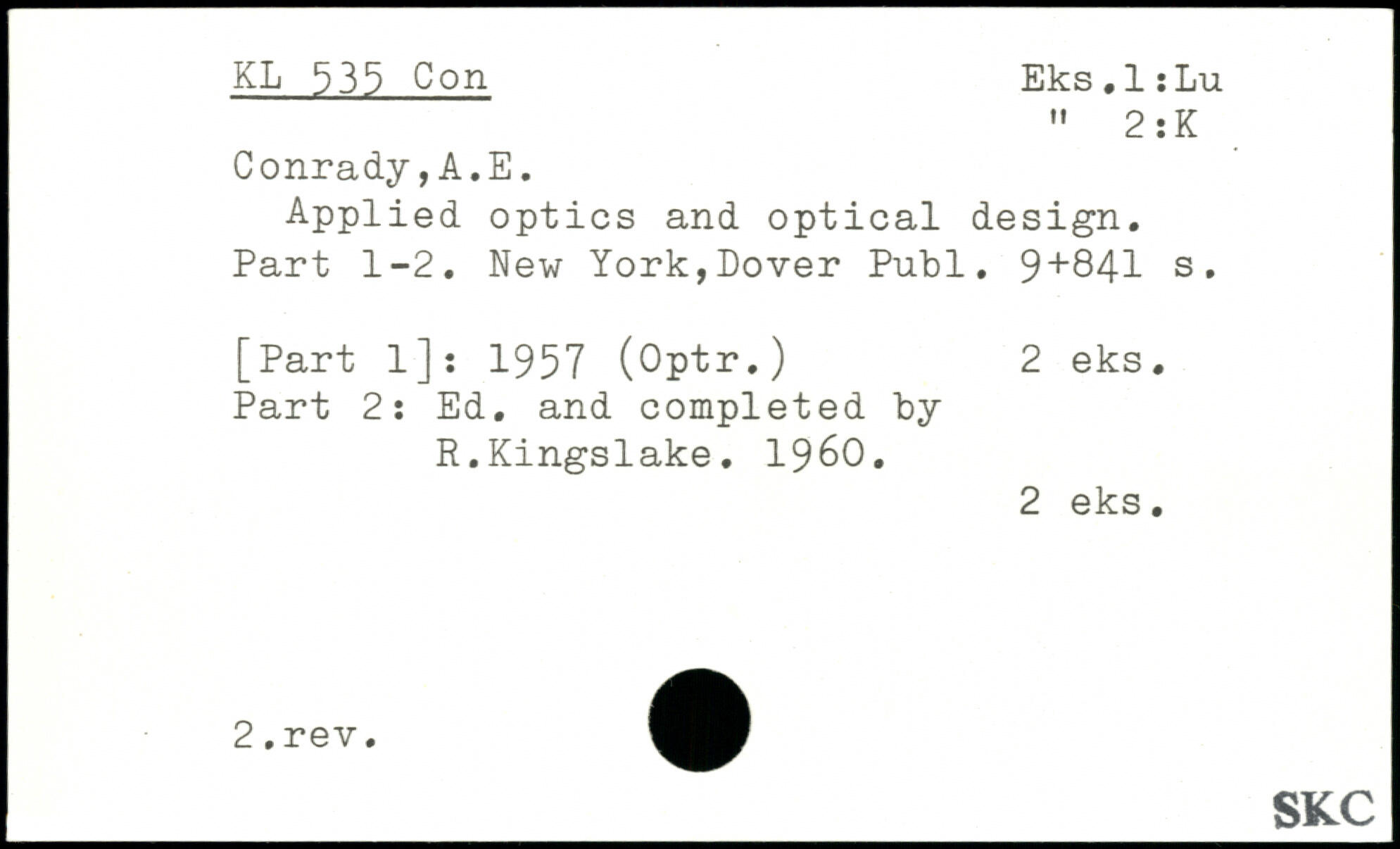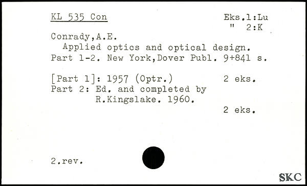 Applied optics and optical design. Part 1-2. New York,Dover Publ.