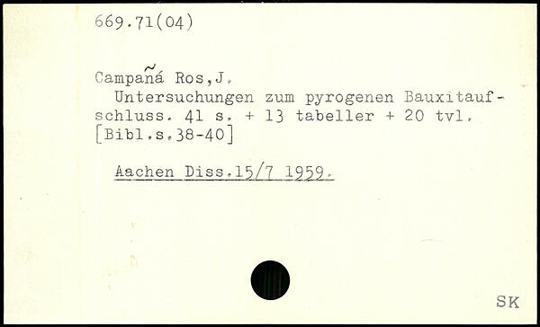 Campana Ros,J, Untersuchungen zum pyrogenen Bauxitaufschluss.