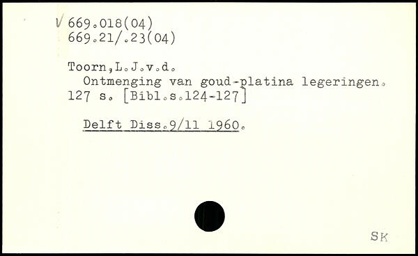 Toorn,La JoVod0 Ontmenging van goud-platina legeringen,, I