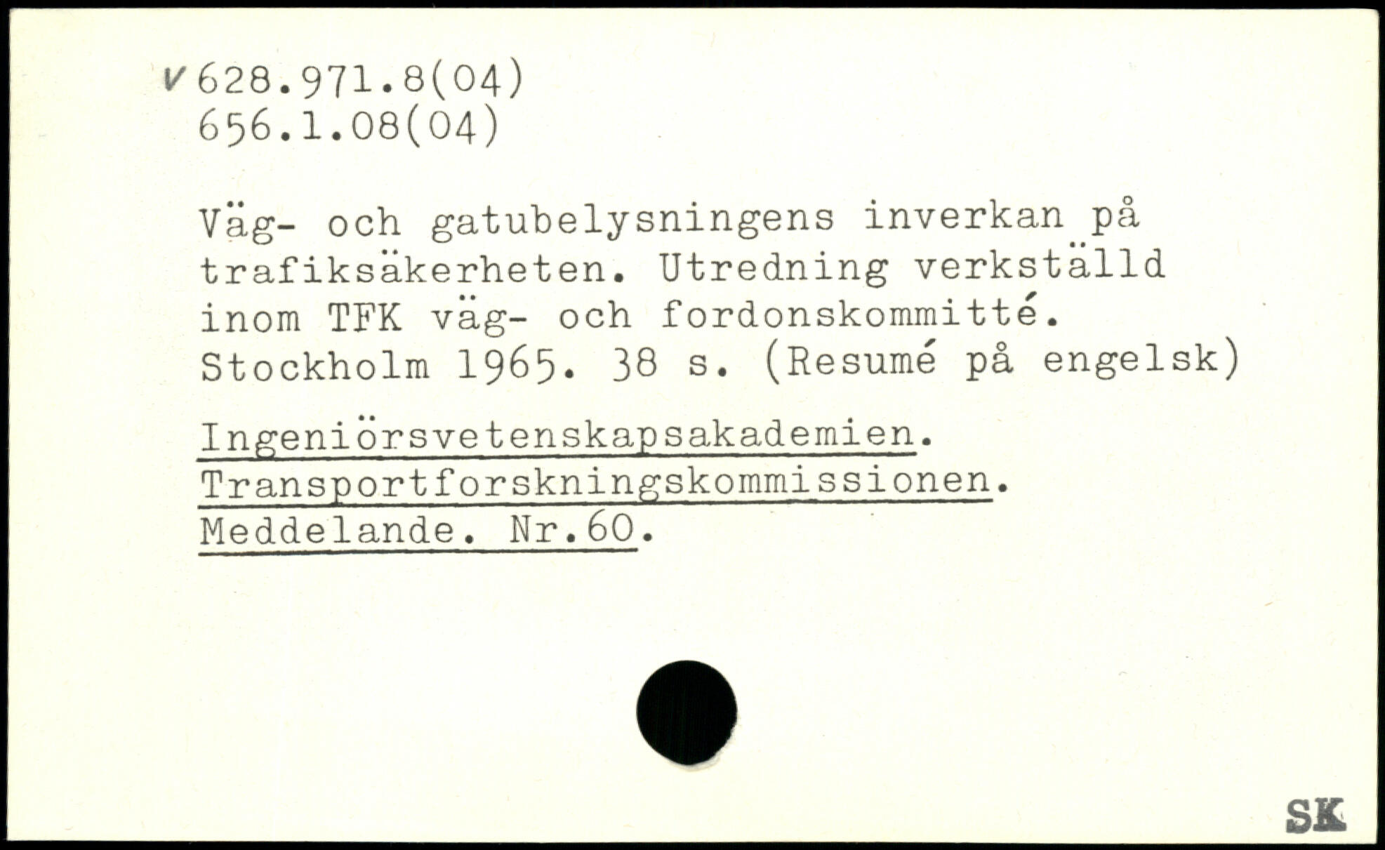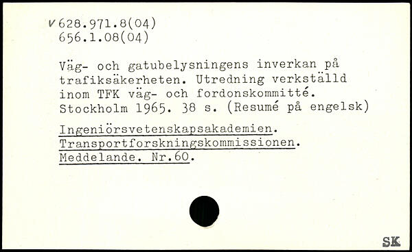 Väg- och gatubelysningens inverkan^på trafiksäkerheten. Utredning verkställd inom TFK väg- och fordonskommitté.